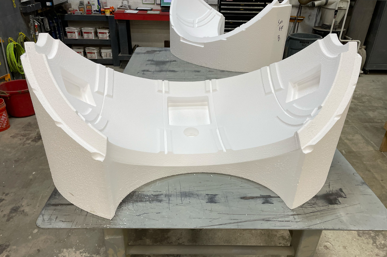 Stage design for live tours imposes demands far exceeding typical fabrication work. “The Eye” required complex three-dimensional geometry to be flawlessly replicated across multiple, large-format components. Maintaining structural and visual integrity was critical as the foam shapes would be hard coated, and later painted by TAIT. Slots throughout the interior of the shape allowed for TAIT to fit a skeleton like metal structure used to suspend “The Eye”. The dimensional accuracy of the slots were critical for the prefabricated metal structure as it was, installed days before final departure leaving no time for minor inconsistencies.